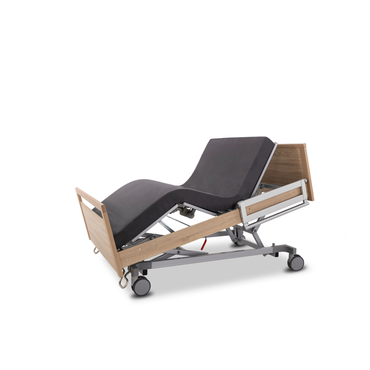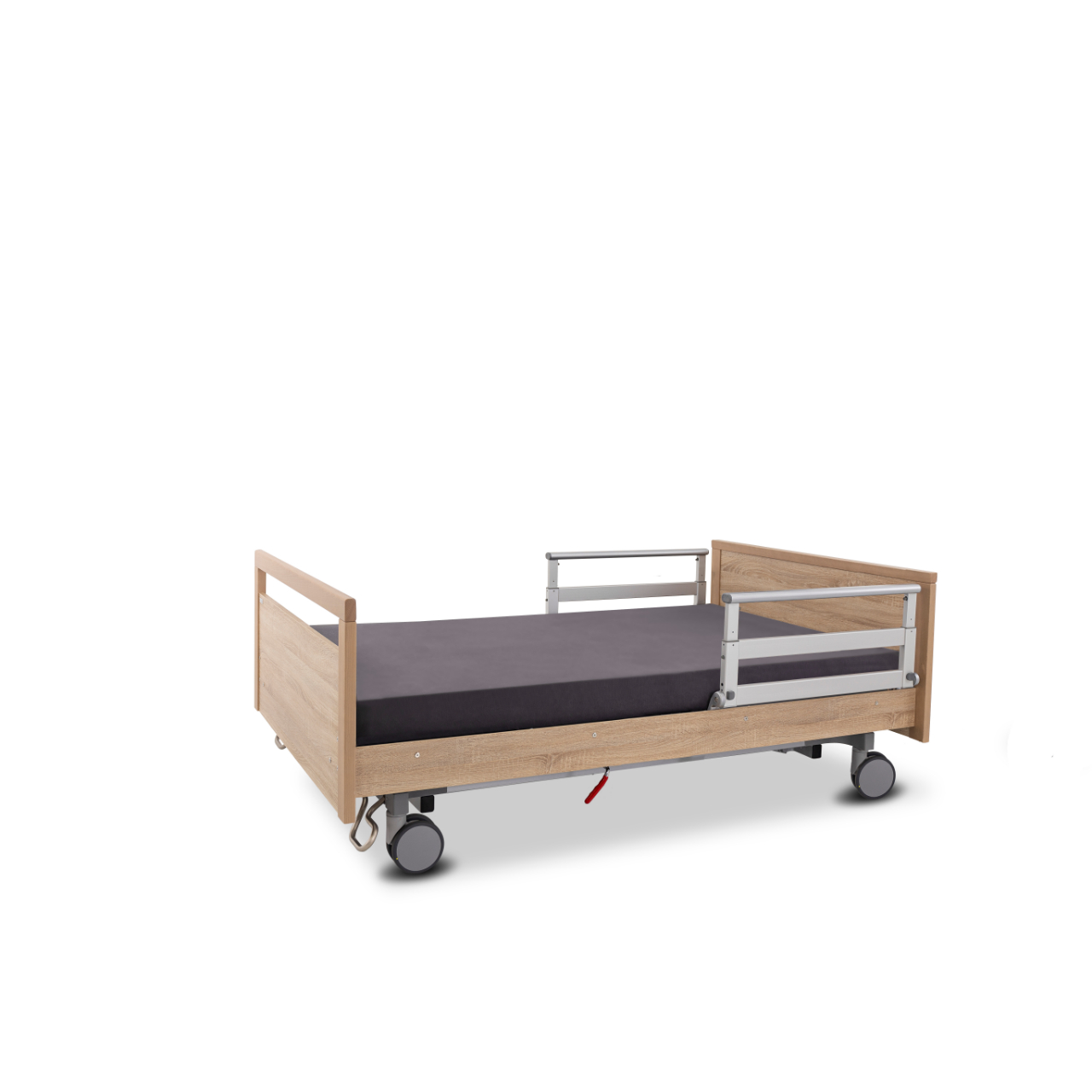 L’IMPULSE Edition XL est le modèle renforcé de la série, conçu pour des charges très élevées. Avec une charge de travail sécurisée jusqu’à 300 kg et une construction renforcée, ce lit répond de manière fiable aux besoins des résidentes et résidents plus lourds. Les roulettes doubles de 100 mm avec frein central garantissent une bonne maniabilité et une grande stabilité malgré sa construction robuste.