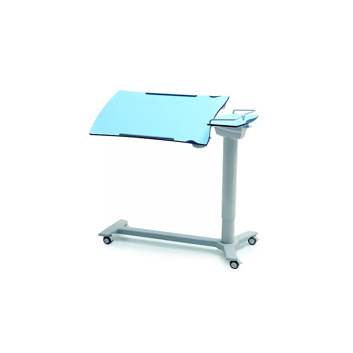 La base efficace en forme de H rend la table compatible avec tous les environnements de soins et assure une stabilité de travail maximale. La conception ergonomique avec empattement avant réduit permet un positionnement dans tous les environnements de patients/résidents. En outre, la table offre une position de lecture idéale grâce à son inclinaison bidirectionnelle verrouillable.